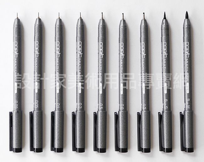 ● COPIC日製代針筆從大小0.03mm開始,一直到S、M、L毛筆頭。